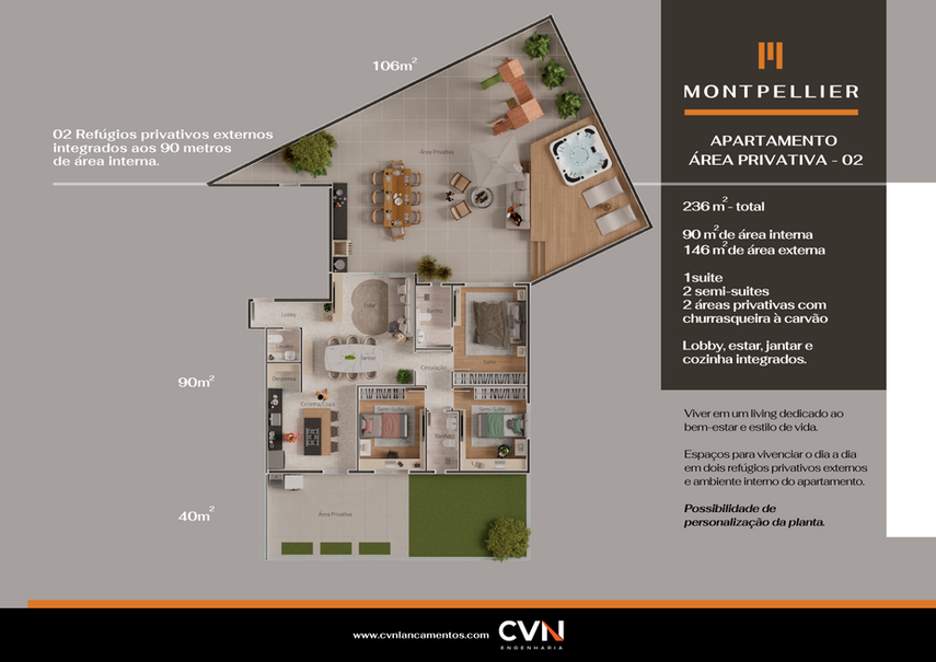 Possibilidade de personalização da planta.